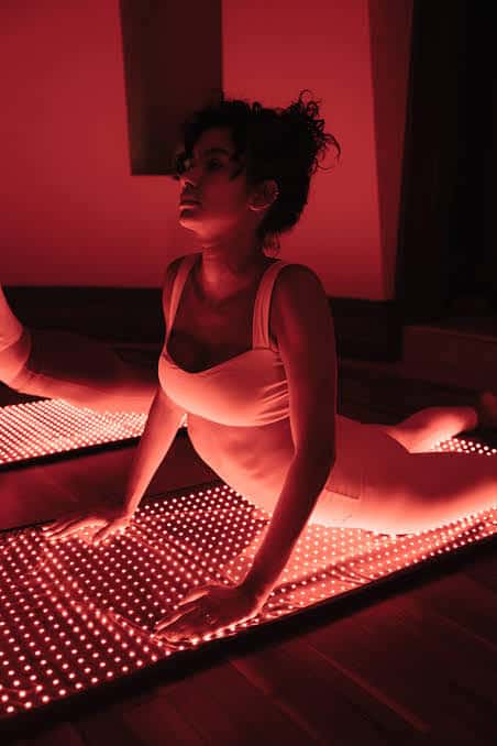 En stillsam och kraftfull upplevelse där rött ljus, infraröd värme, manuell lymfdränage, andning och terapeutisk yoga samverkar för att återställa kroppens naturliga flöde.